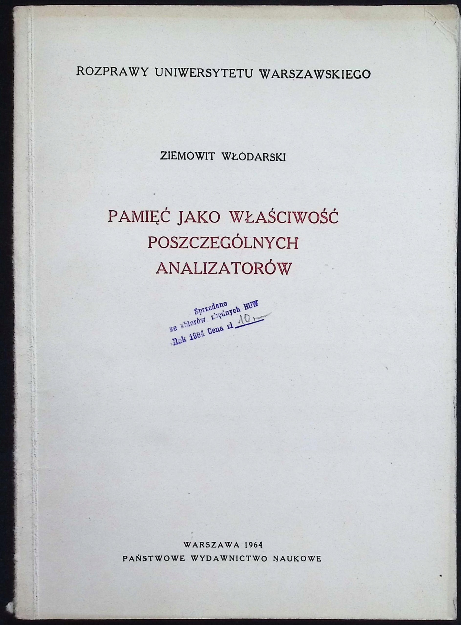 Pamięć jako własność poszczególnych analizatorów Ziemowit Włodarski