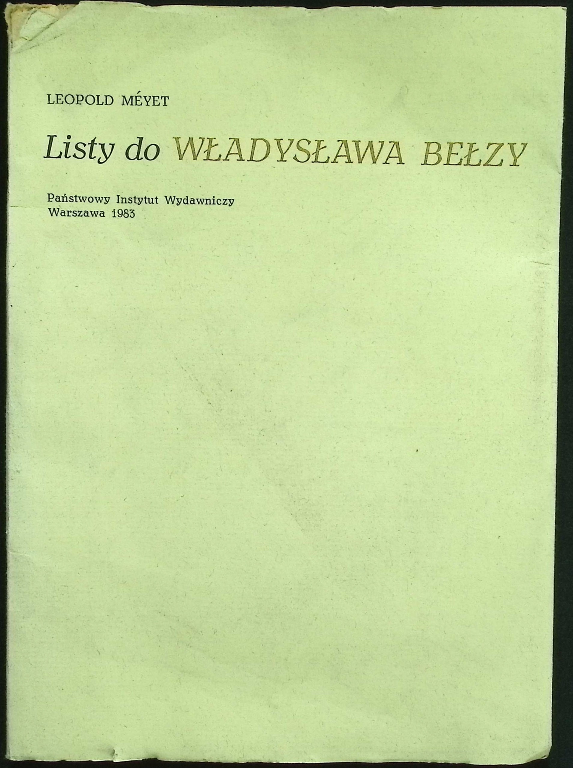 Listy do Władysława Bełzy Leopold Meyet