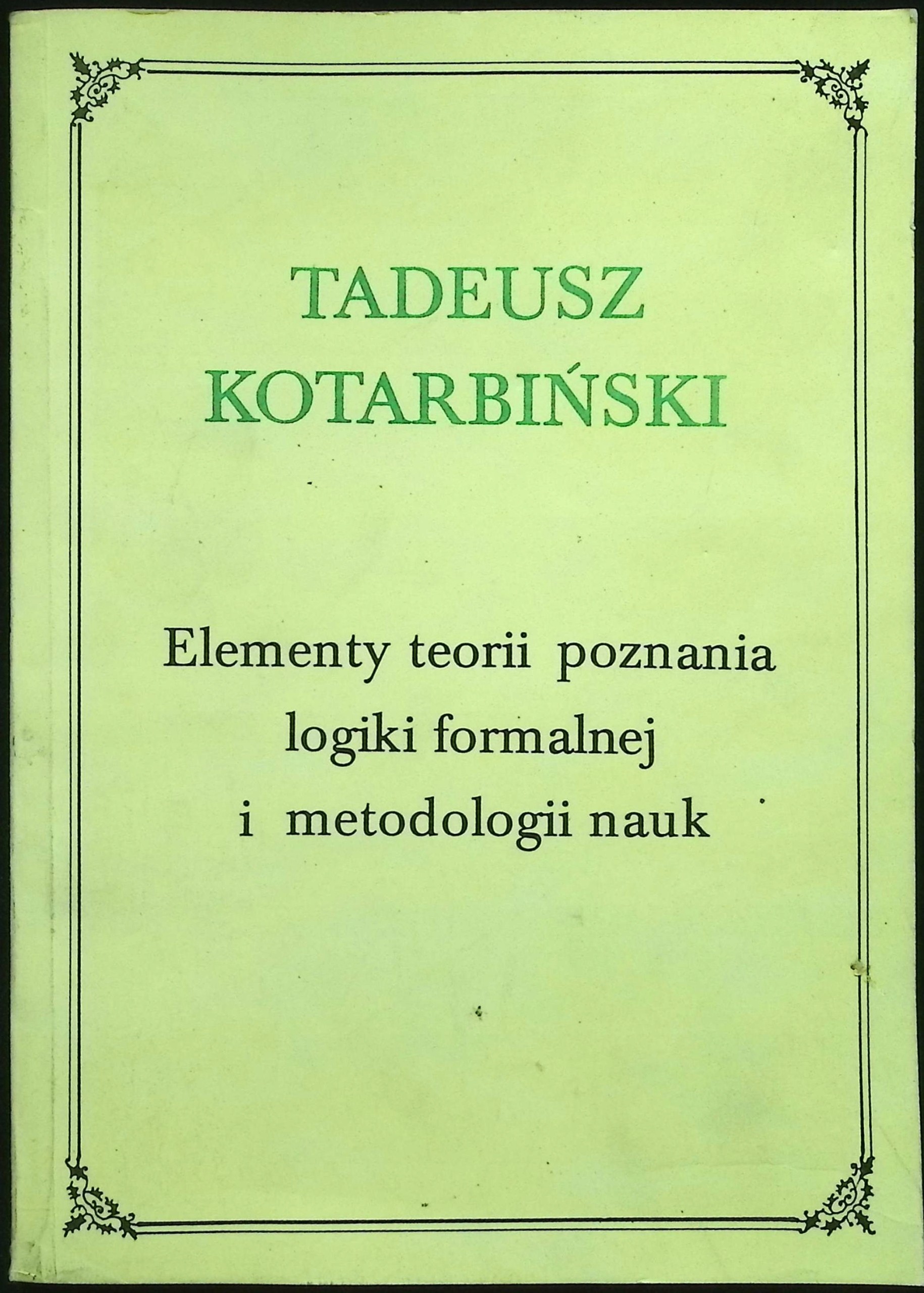 Elementy teorii poznania logiki formalnej i metodologii nauk Kotarbiński