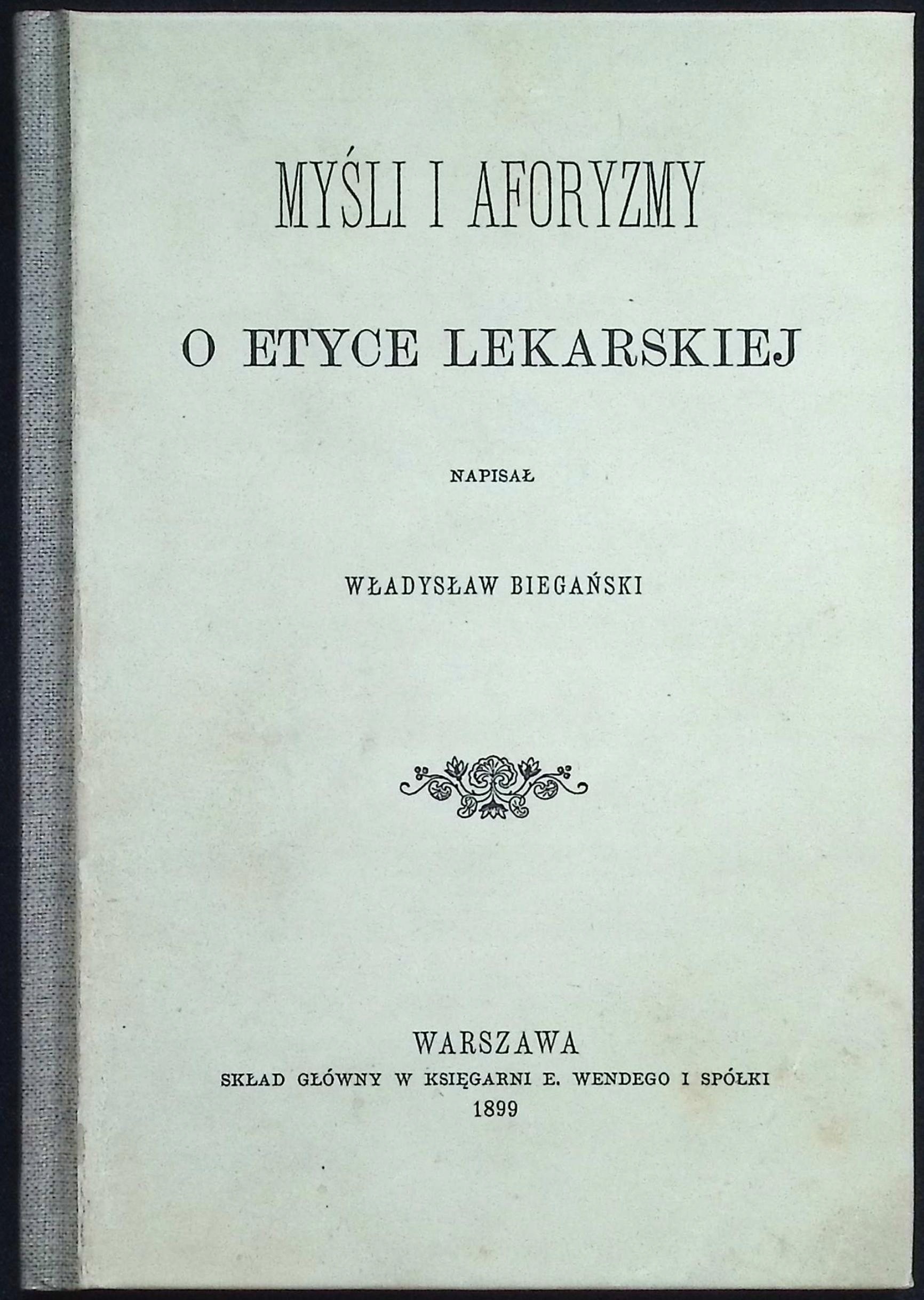Myśli i aforyzmy o etyce lekarskiej Władysław Biegański