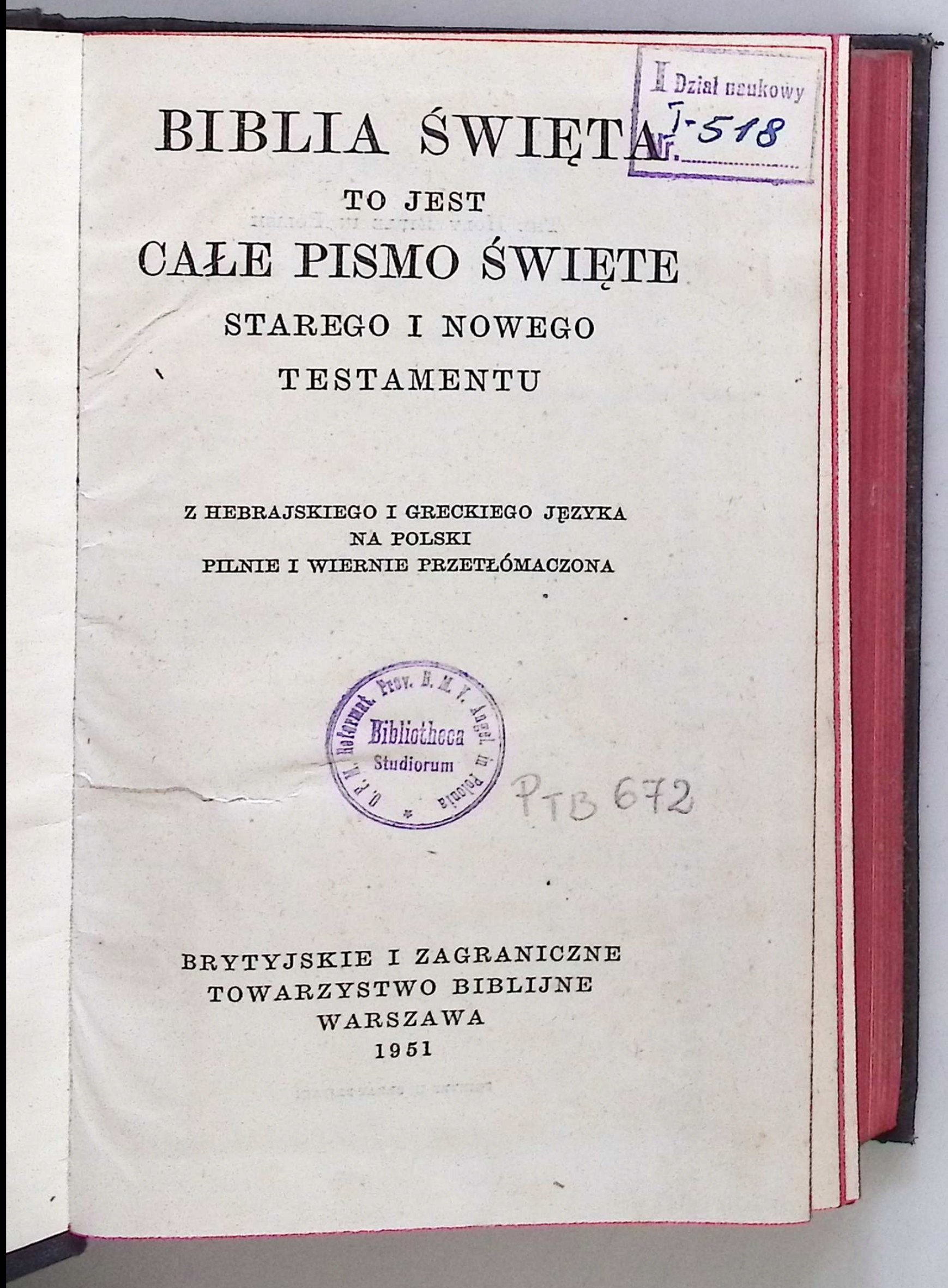 Biblia Święta to jest całe Pismo Święte 1951r.