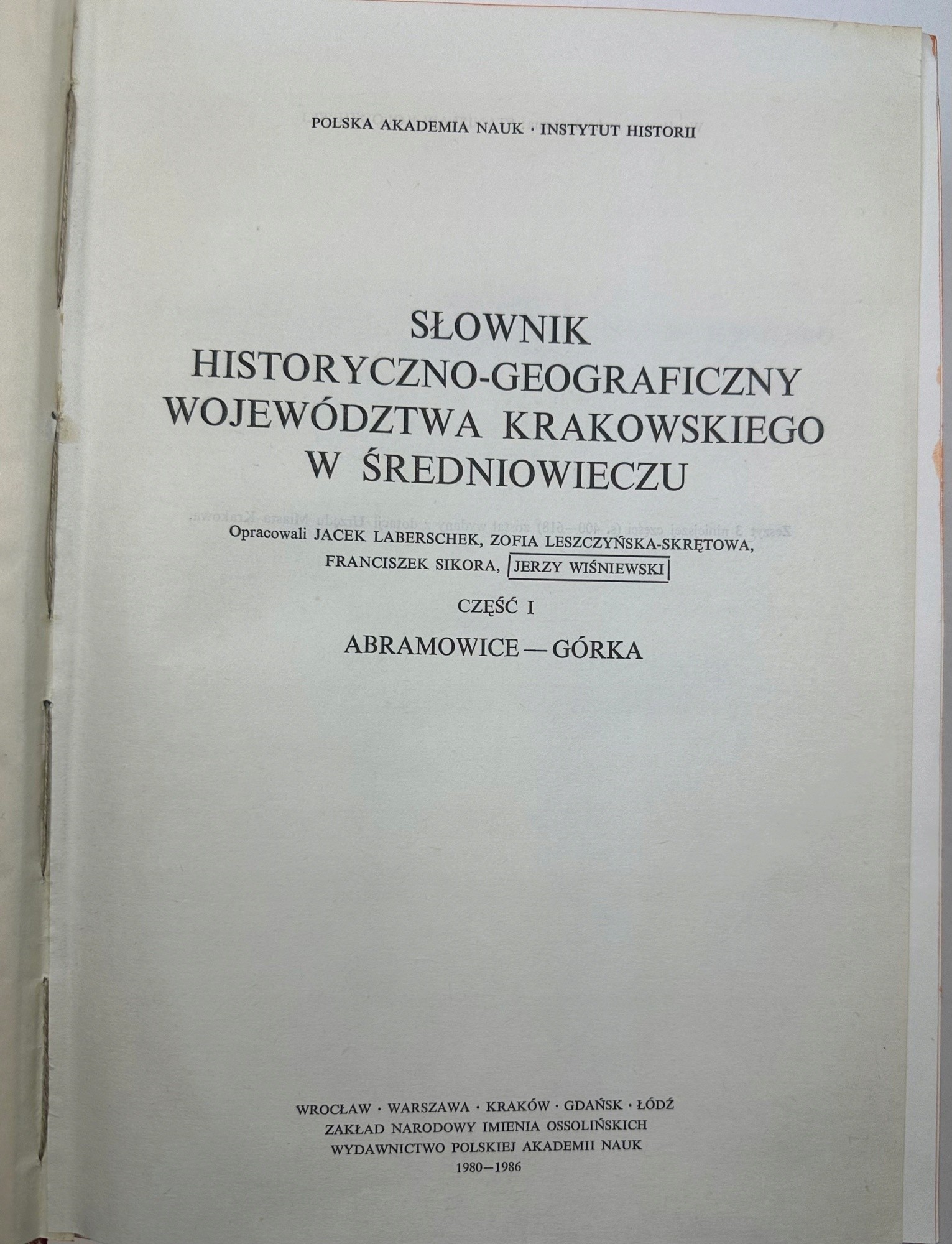 SŁOWNIK HISTORYCZNO-GEOGRAFICZNY WOJEWÓDZTWA KRAKOWSKIEGO W ŚREDNIOWIECZU A
