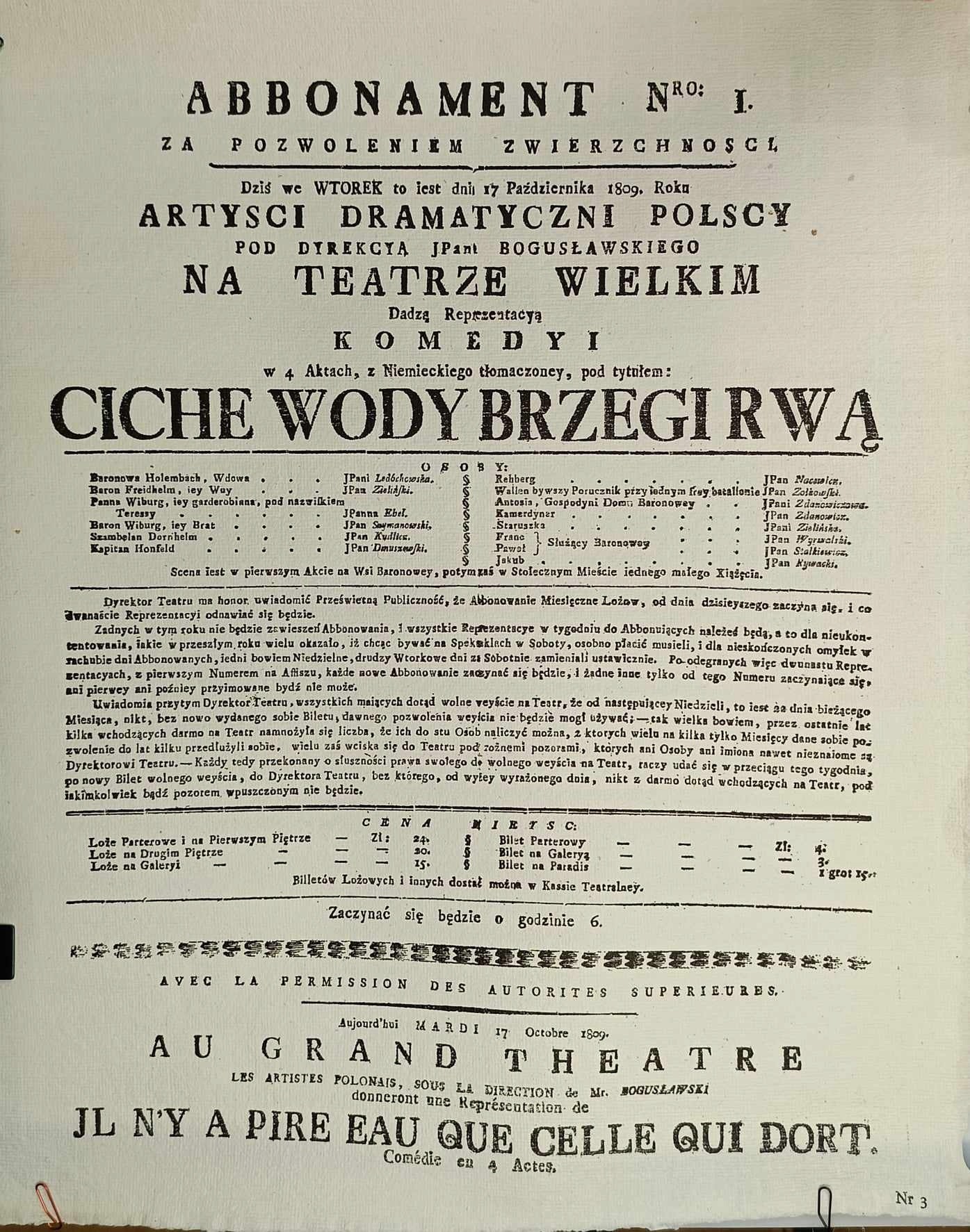 Afisz teatralny: Ciche wody brzegi rwą