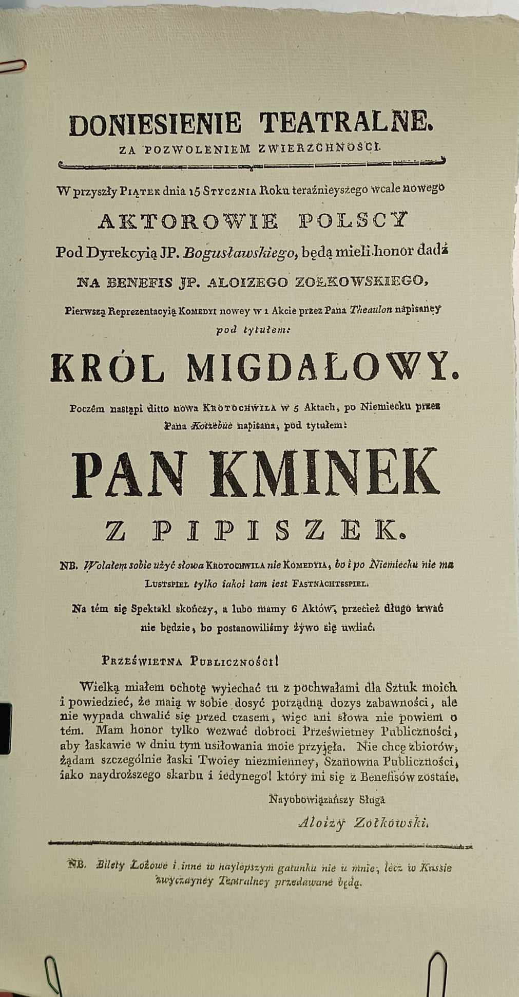 Afisz teatralny: Król migdałowy. Pan Kminek z Pipszek